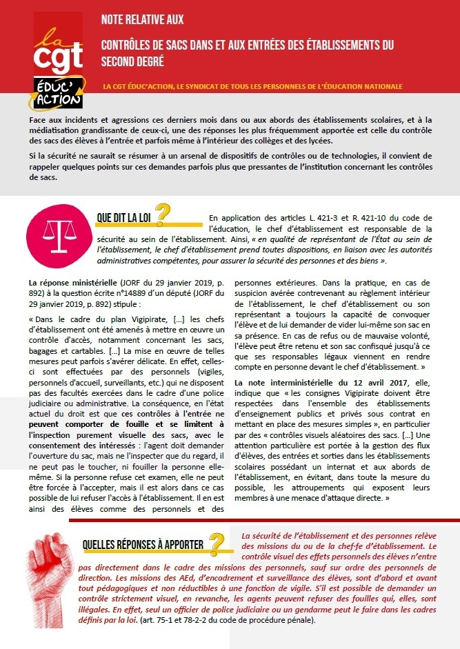 Pour la CGT Educ'action, cela signifie que le lieu où il est tenu doit être porté à la connaissance des personnels par voie d'affichage et que le lieu choisi doit permettre que ce registre soit rempli et consulté hors-présence hiérarchique
