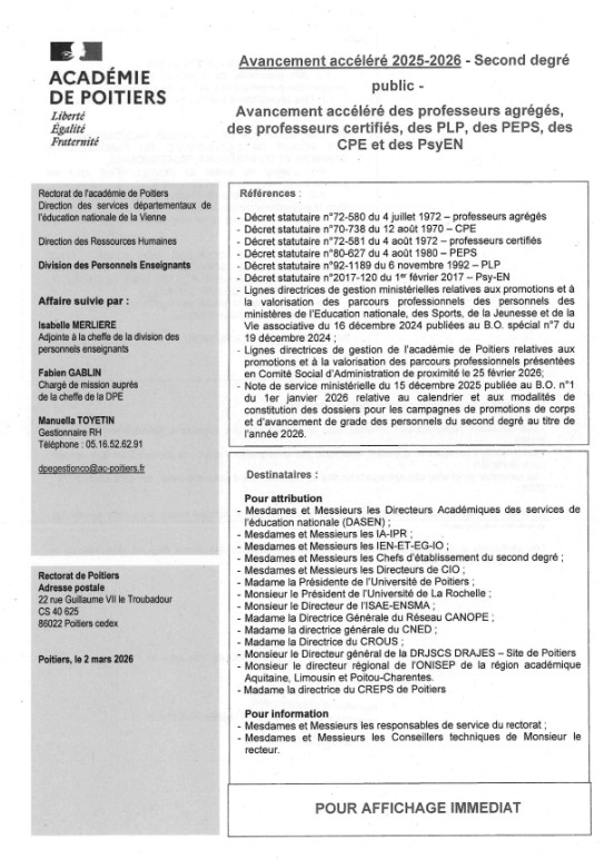 -Avancement d'échelon en 2025/2026 (circulaire)